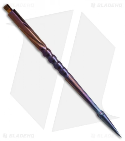 This custom ice pick measures 6.25″ overall and features a heat colored titanium rod and oversized skull cap. Threaded rod and skull.