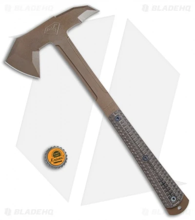 The Wrath is a high performance tactical axe designed to give you the best of both worlds, with the head of a crash axe and the CQC abilities of a tomahawk. Designed by Robert Cabrera of Filo Bladeworks, this bad boy has the power and stroke to take on any challenge with the precise finesse of a surgeon. The bearded head and the scalloped spike offer maximized piercing and slicing applications. Robert custom designed the handle and texture for the perfect amount of retention in gloved or bare hands. Item includes a kydex blade cover with loop strap attachments.