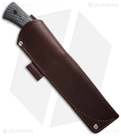 The Camp Knife is a large fixed blade with a wide-profile drop point shape. It’s full-tang blade is stonewashed CPM-3V steel and is outfitted with grooved black canvas Micarta scales. Includes a premium leather sheath.