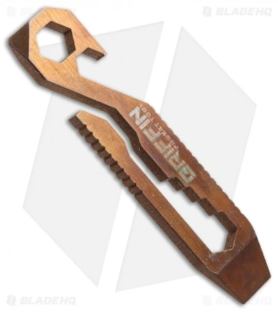 The Griffin Pocket Tool offers a slim EDC design with 11 essential utility tools. This sleek pocket accessory combines a screwdriver, prybar, bottle opener, scoring tool and several wrench sizes into a compact, self-contained tool kit. A deep carry pocket clip allows for comfortable pocket carry without adding to the bulk in your pockets. This Griffin Pocket Tool is made from titanium in a bronze anodized finish.