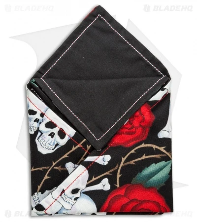 This Hanksbyhank model features a skull & bones theme with a black linen backing.