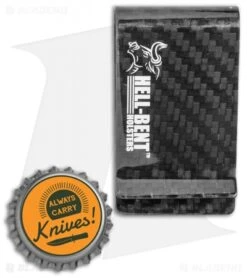 This Money Clip model is made from carbon fiber with a Hell-Bent Holsters logo. Hell-Bent Holsters’ money clips offer a convenient way to stash your important cards and money without the bulk of a wallet. They can also be clipped to the large and medium sized Hell-Bent Wallets when more storage is necessary. This model is made from carbon fiber for a strong, lightweight build. Leave that wallet bulge behind with a Money Clip from Hell-Bent Holsters.
