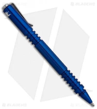 This Investigator Pen model features a polished, blue anodized 6061-T6 aluminum body.
