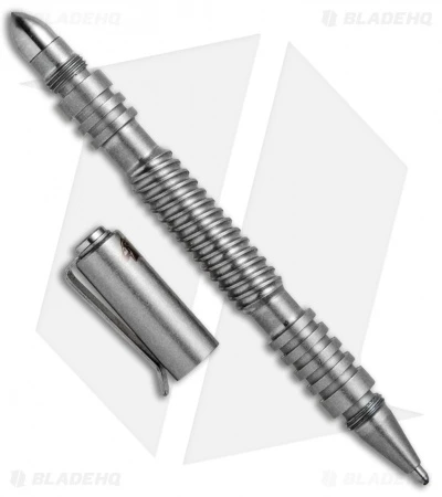 The Investigator Pen is a compact self-defense implement from Hinderer Knives. It is a smaller sized tactical pen for more discreet carry but with the toughness and styling cues of his kubaton and Extreme Duty pens for a firm grip when used in a CQB role. The Investigator Pen has a threaded bullet tip that is part of the modular design so that it can be customized with other attachments to fit the user’s specific needs. The threads for the cap and bullet are course and tall to handle hard strikes. The Investigator Pen uses a replaceable Fisher Space Pen cartridge.