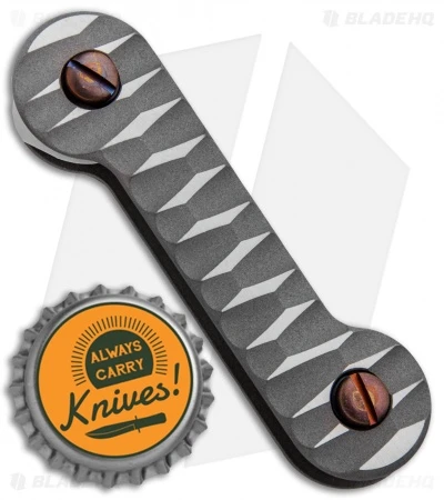 This KEY-BAR has a titanium handle with sculpted handles with satin flats and blasted valleys. Includes a removable titanium pocket clip.