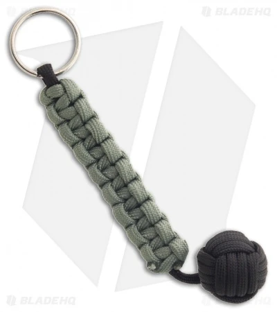 The Knotty Boys Monkeys Fist Fob has a 3/4″ chrome steel ball that is tied with paracord and ends with a slip knot. Includes a split ring for attachment to keys, zippers and anything else you choose.