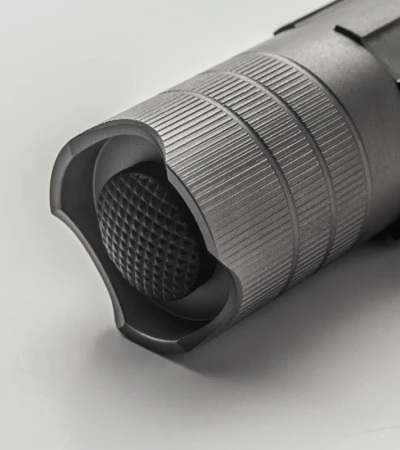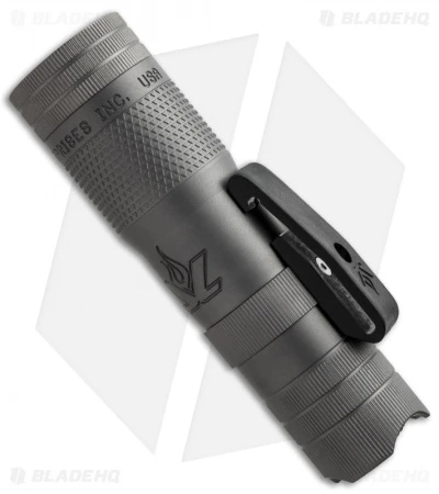 This Mini Delta Ti is a dual-output model with a CREE XPG LED. The body is bead blast finished titanium with a tailstand and smooth bezel that features the Delta Grip for the rotary focus operation. Includes Delrin pocket clip. Powered by one (1) CR123 battery (included) or RCR123 rechargeable battery.