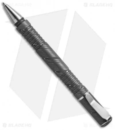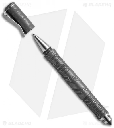 This model is an impressive setup that features a Rob Thomas stainless Damascus steel grip, cap, and body. Titanium is utilized on the tip, end piece and striker.