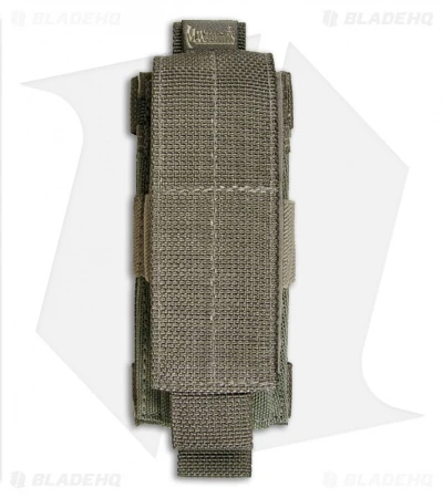 Maxpedition’s durable foliage green single sheath can hold an extra flashlight, small cellular phone, multi-tool, folding knife, or handgun magazine. It can also be attached to your backpack as an accessory or be carried on the belt upright or sideways. The length of the sheath lid is adjustable with an internal Velcro attachment for longer items, or are completely removable for those who want the quickest access.