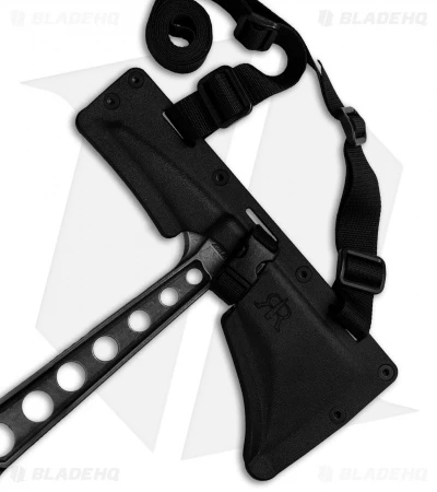 - Kydex sheath offers PALS/MOLLE compatibility with optional shoulder strap and belt buckle configurations.