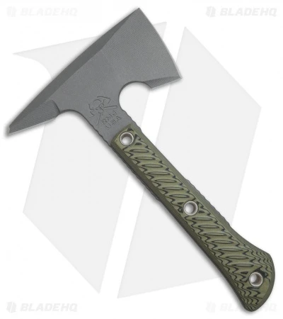 This Mini Jenny Tomahawk model is outfitted with Dirty Olive G-10 handle scales and a Tungsten Cerakote finished head.