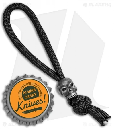 This Classic Skull Bead Zipper Pull from Schmuckatelli is made from pewter in a black oxide finish. Schmuckatelli beads, lanyards and zipper pulls offer the perfect accessory for your favorite knives and gear. Click on the pictures above for a larger, detailed look at this intricately designed zipper pull bead.
