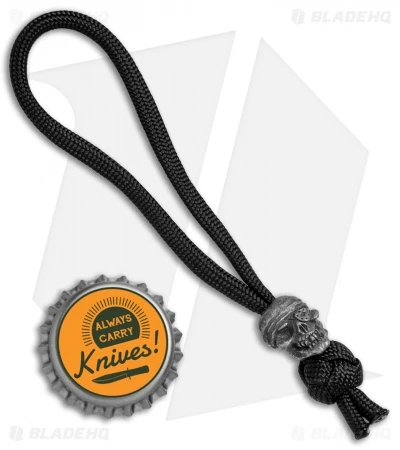 This Schmuckatelli zipper pull features a black oxide finished pewter One Eye Jack Skull Bead. Be sure to click on the pictures above for a larger, detailed look at this cool skull bead.
