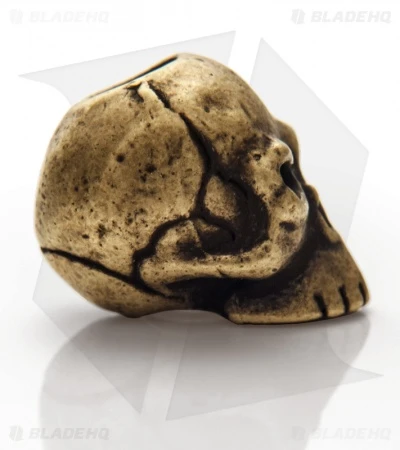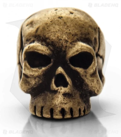 Classic Skull Bead with a Roman Brass oxidized finish. The Schmuckatelli lanyard bead is just the way to dress up your knives and gear. Be sure to click on the pictures above for a larger, detailed look at this cool skull bead.