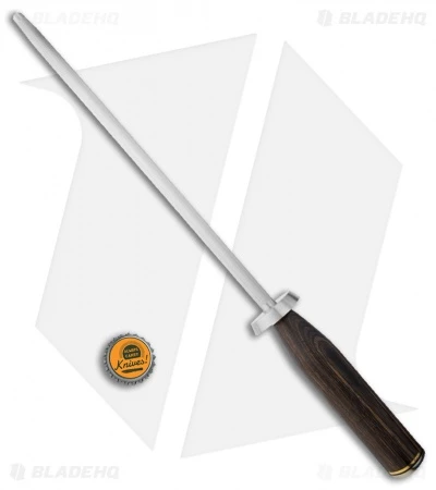The Shun 9″ honing rod lets you quickly and easily return the dulled edge of your Shun knives to razor sharpness. It has guide built into the handle, so you can easily hone your knives at the correct Shun angle, gently realigning the cutting edge of your knives to go longer between sharpening sessions. The premium Pakkawood handle provides a comfortable grip and matches the handles of the rest of the Shun Premier line.
