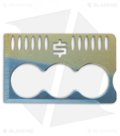 The Crisis Card 3.0 is the latest and greatest from Snody Knives. It features blue and gold anodized 6Al4V titanium construction with three finger holes. This one has blue fade anodized faces and two sharpened chisel ground edges. Designed specifically as a last attempt self-defense implement. The Crisis Card may also be used for daily tasks like opening a box, scraping ice and the like. Includes signed and dated Certificate of Authenticity.
