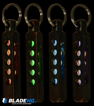 The Square Minimalist Tritium Lantern from Spalinger Gear is an affordable accessory with a simple and elegant design. This model comes in a smooth style with an antique patina. Harley Spalinger incorporates tritium with finesse into this solid brass cylinder bead. It comes attached to a stainless steel mini clip that’s easy to attach to zipper pulls, key chains, or gear bags.