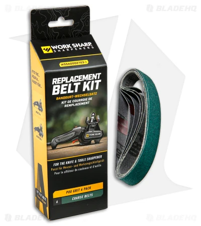 Work Sharp Knife and Tool Sharpener Coarse Grit Belt Kit. Contains 6 P80 abrasive belts for the Work Sharp Knife and Tool Sharpener. Aluminum Oxide.