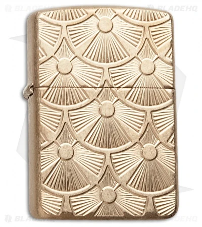 This authentic refillable Zippo lighter features a tumbled brass finished body with a fanned disc pattern. The Armor line case is 1.5 times as thick as a standard Zippo.