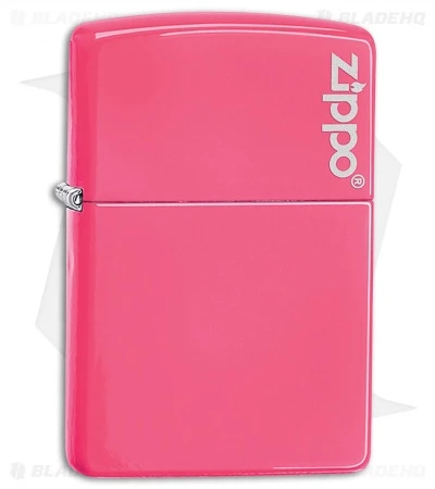 This Zippo model features a hot pink finish with a Zippo logo.