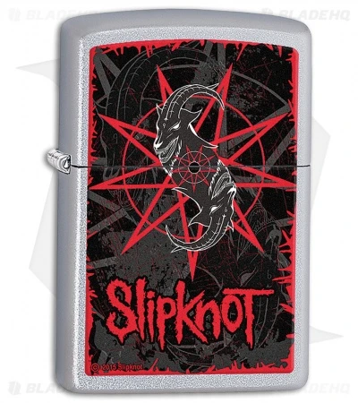 This Zippo model features a satin chrome finish and a Slipknot graphic.