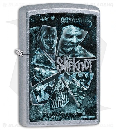 This Zippo model features a street chrome finish and a Slipknot Shattered Glass graphic.